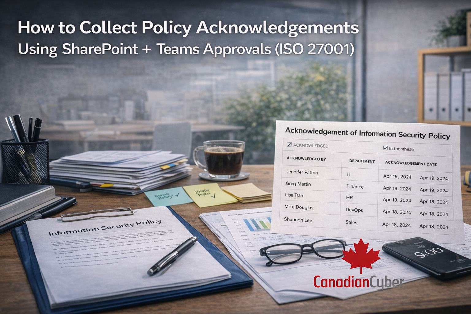 Stop chasing “I read it” replies. This guide shows how to use Teams Approvals + SharePoint to create an audit-ready policy workflow for ISO 27001—from policy approval, to publishing the correct version, to sending department acknowledgement emails, to tracking who acknowledged and when. You’ll get a practical setup that reduces manual follow-up and gives you clean evidence for audits.