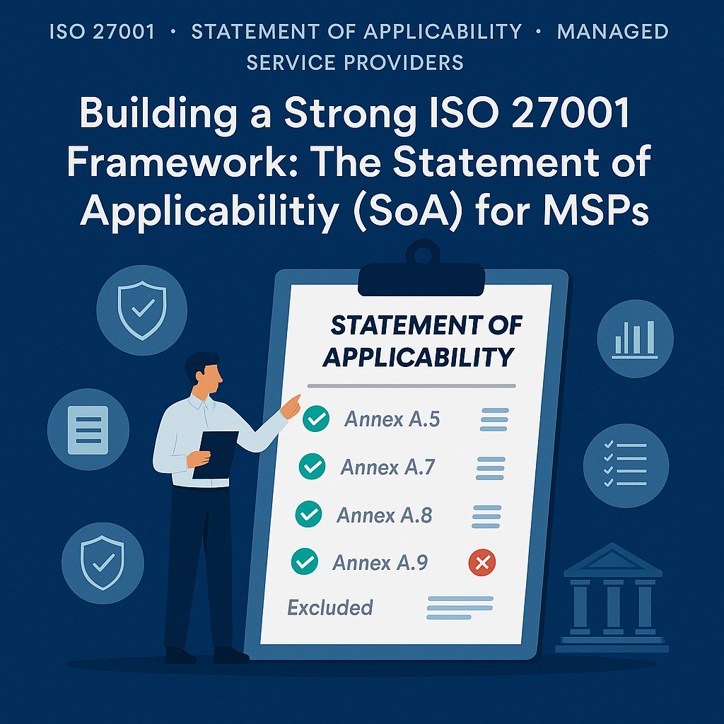 This guide explains how to build and maintain a Statement of Applicability (SoA) that aligns risks, controls, and evidence helping MSPs demonstrate transparency, readiness, and client trust during audits.